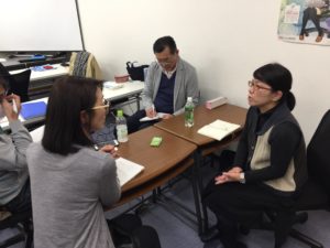 今回は、インテーク面談での傾聴、反射、質問など、それぞれのスキルの向上を目指して、ロールプレイに取り組んでいました。